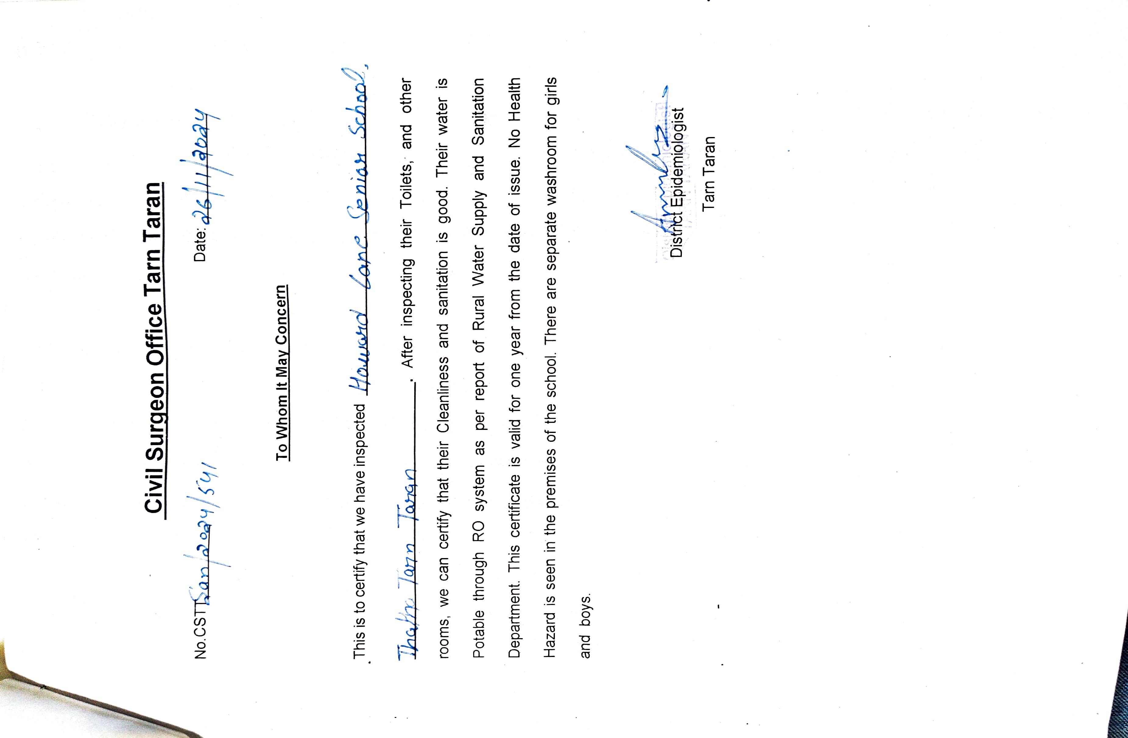 COPY OF THE DEO CERTIFICATE SUBMITTED BY THE SCHOOL FOR AFFILIATION/UPGRADATION BY SCHOOL
