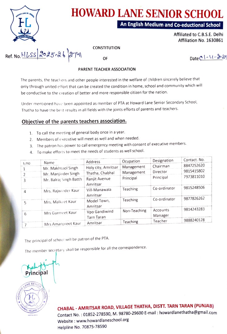 LIST OF PARENTS TEACHERS ASSOCIATION(PTA) MEMBERS