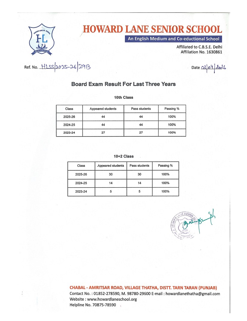 LAST THREE-YEAR RESULT OF THE BOARD EXAMNATION AS PER APPLICABLILITY